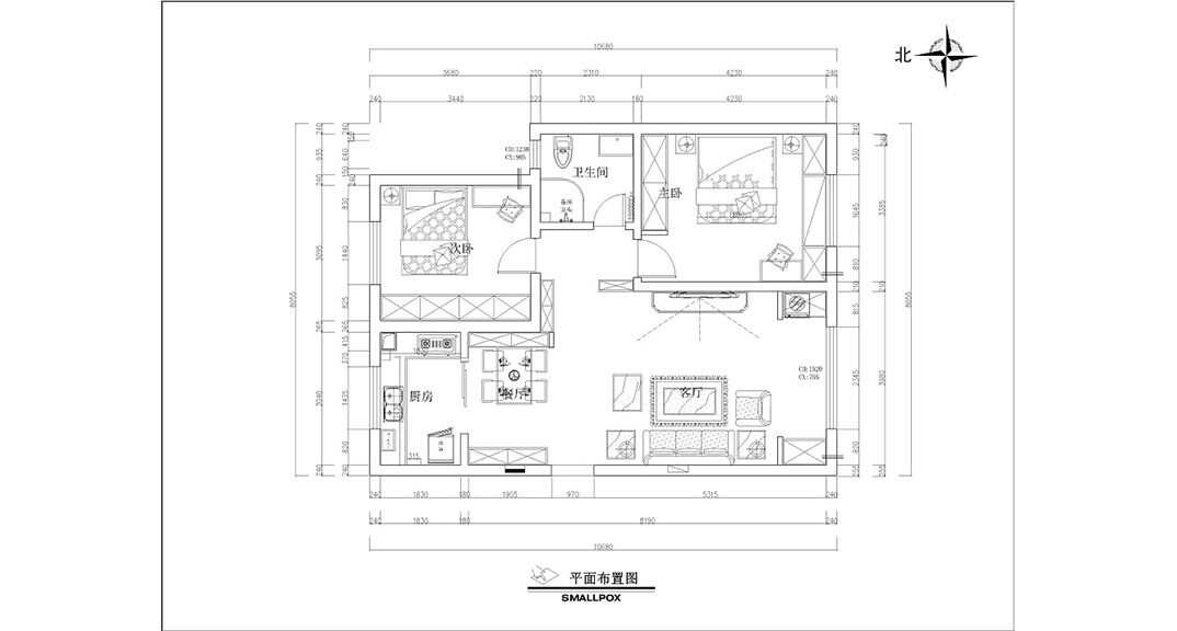 午山96㎡兩室兩廳戶型平面布局圖