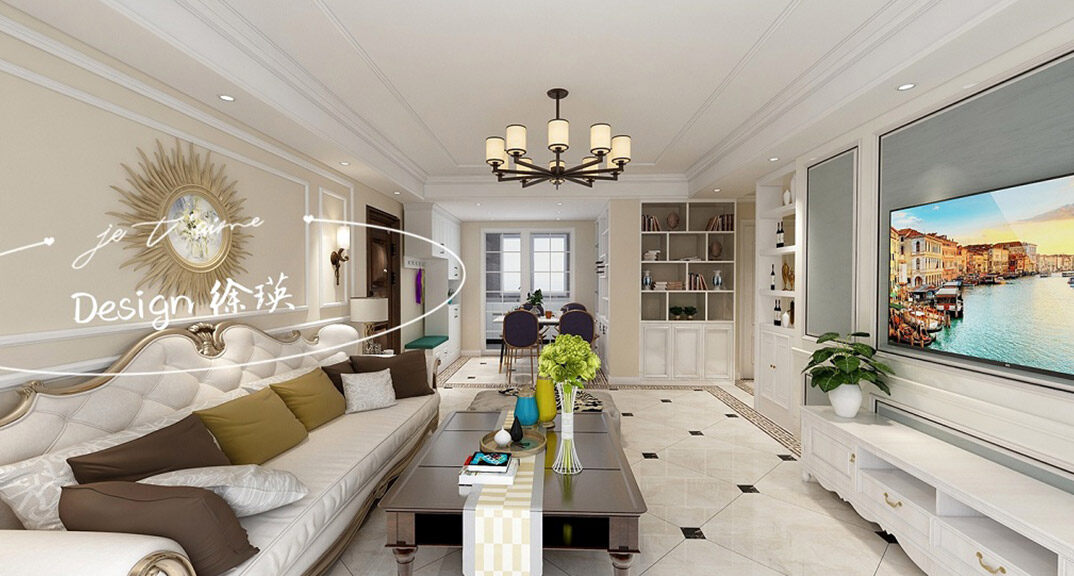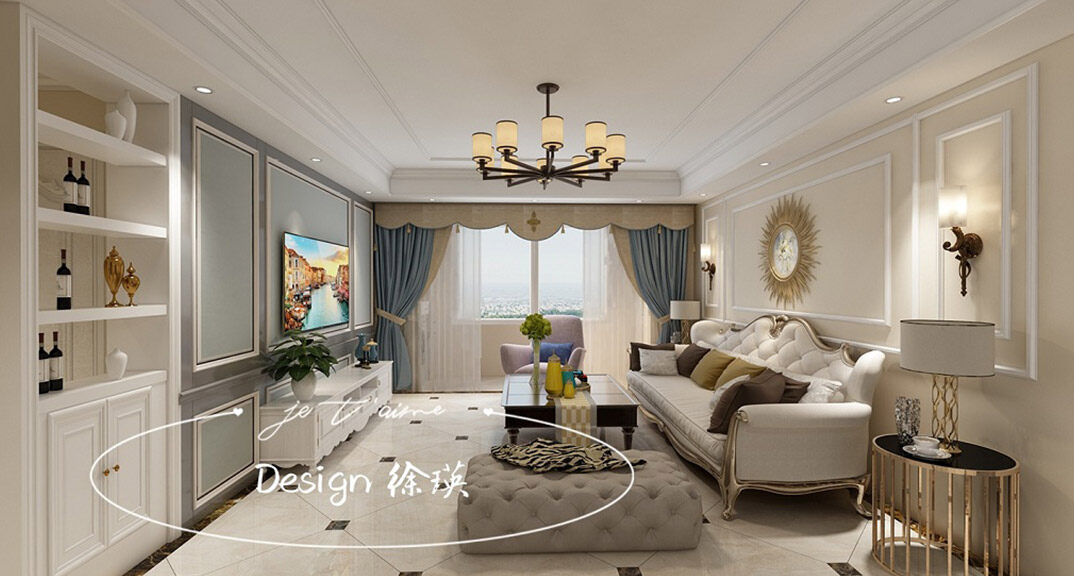 午山96㎡兩室兩廳客廳簡歐風(fēng)格裝修案例效果圖