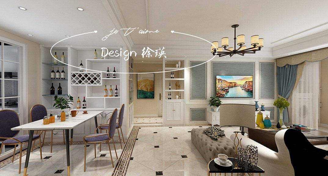 午山96㎡兩室兩廳客餐廳簡歐風(fēng)格裝修案例效果圖
