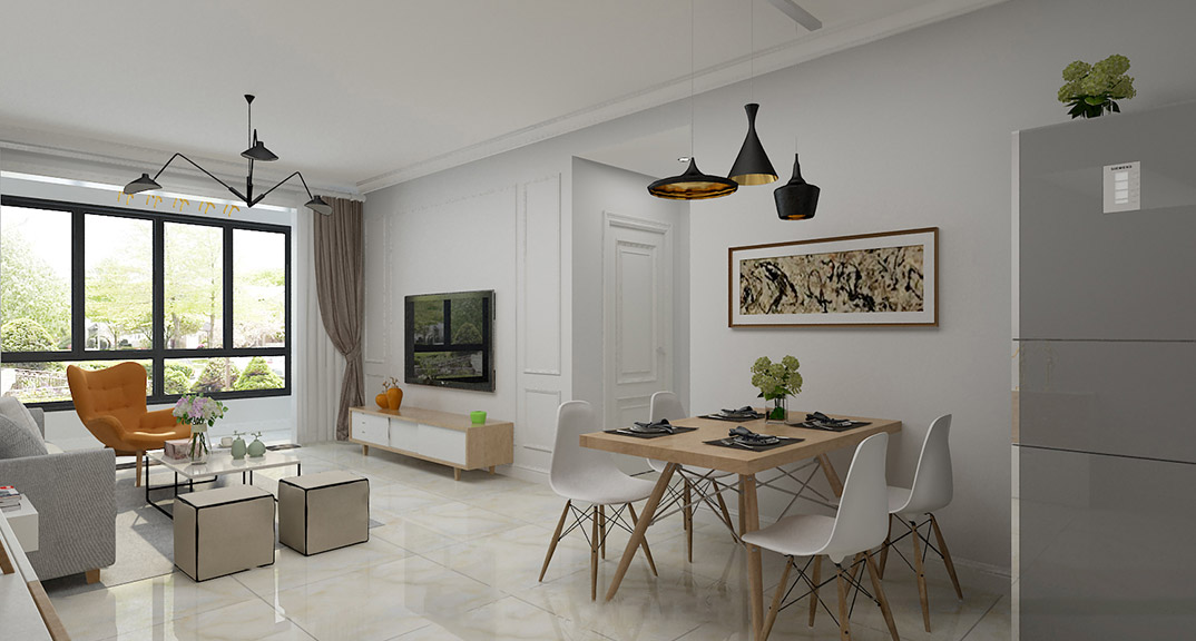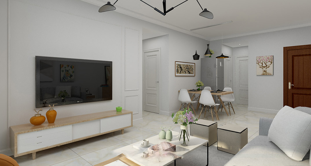 永利國際87㎡兩室兩廳客餐廳電視現(xiàn)代風(fēng)格裝修案例效果圖