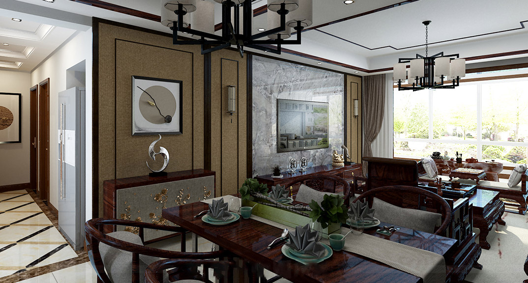 安泰德園142㎡三室兩廳客餐廳新中式風(fēng)格裝修案例效果圖