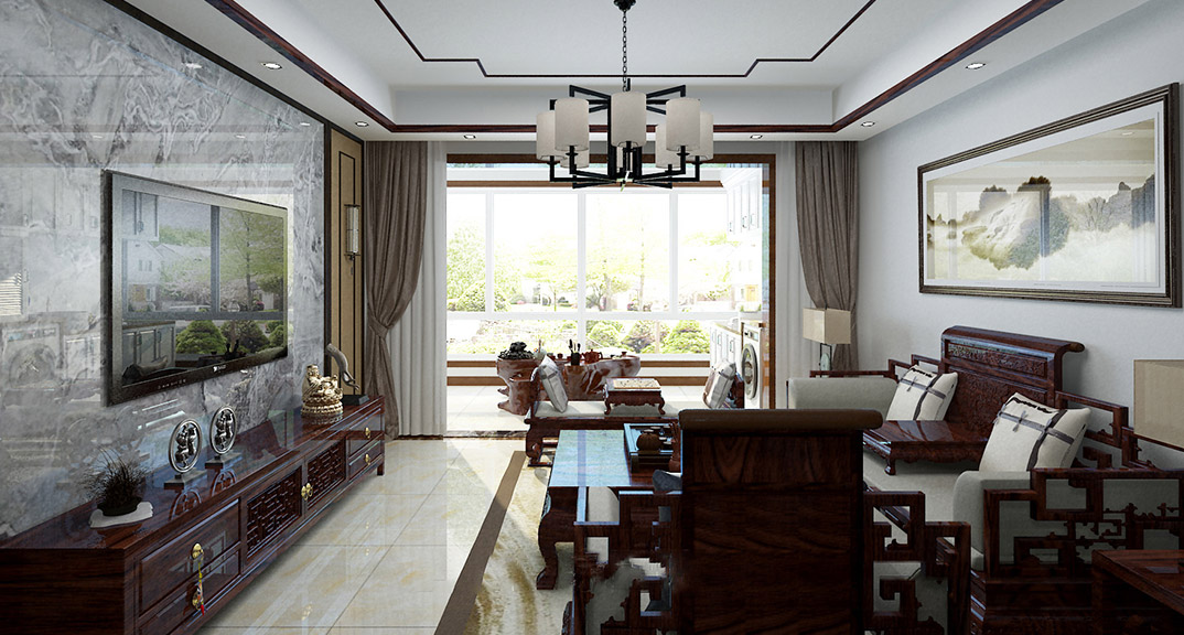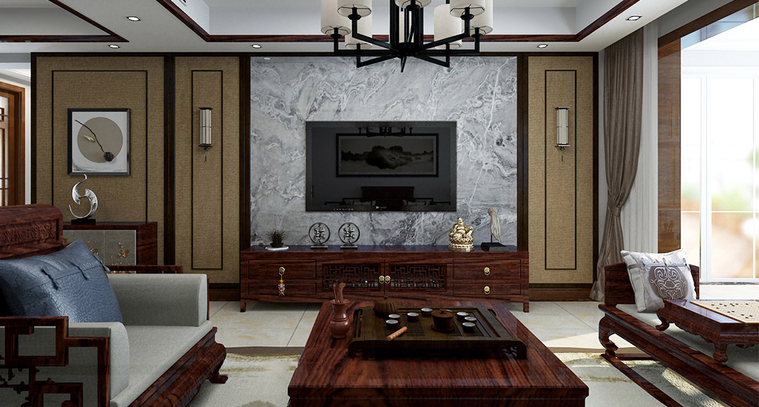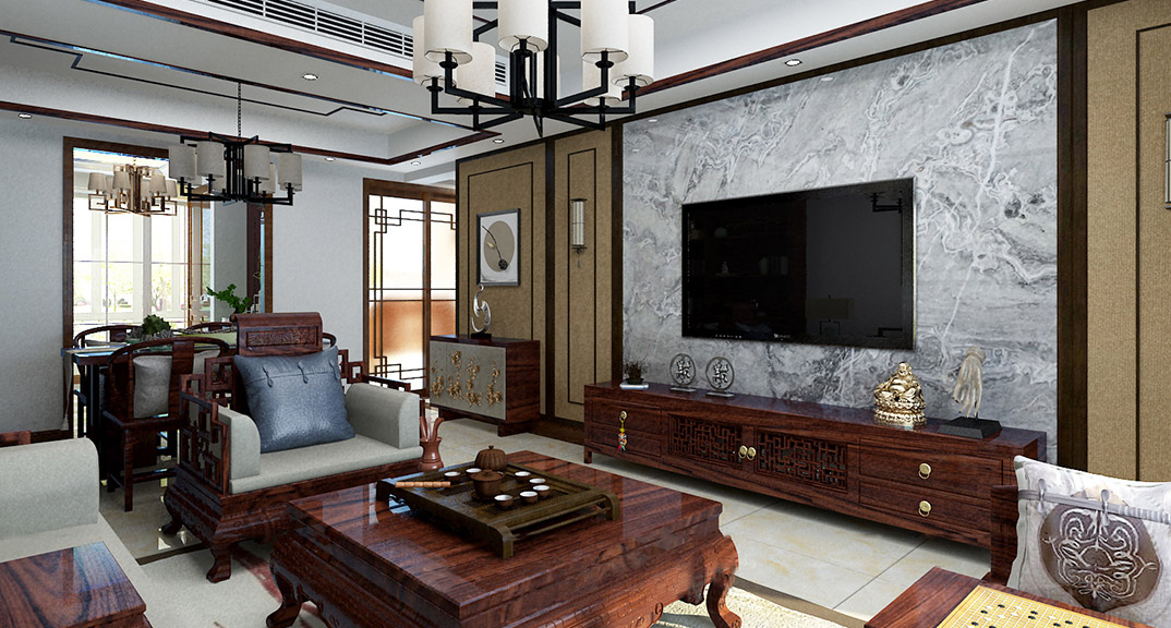 安泰德園142㎡三室兩廳客廳新中式風(fēng)格裝修案例效果圖