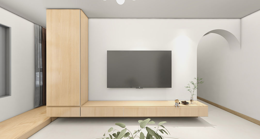 中歐國際城115㎡三室兩廳客廳電視原木極簡風(fēng)格裝修案例效果圖
