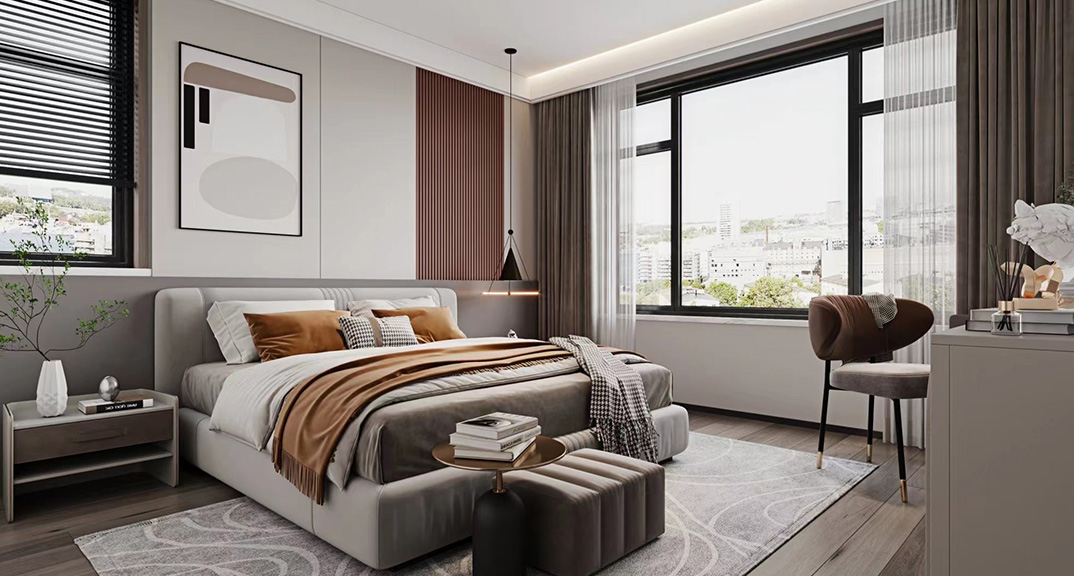 海韻廣場203㎡四室兩廳臥室輕奢風格裝修案例效果圖