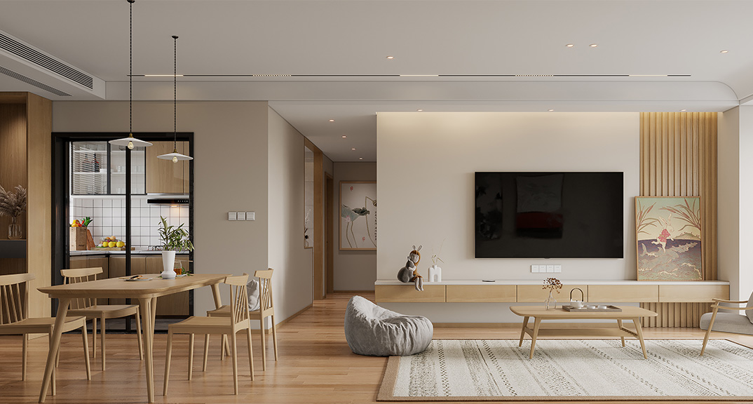 盛世華府112㎡三室兩廳客餐廳現(xiàn)代風(fēng)格裝修案例效果圖