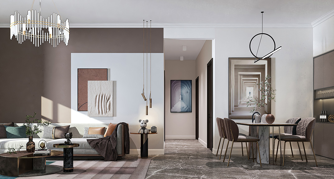 東岸世家110㎡三室兩廳客餐廳現(xiàn)代簡約風(fēng)格裝修案例效果圖