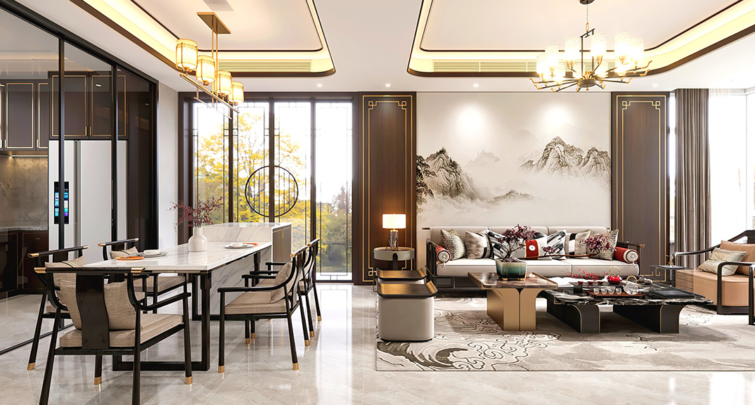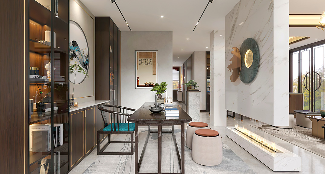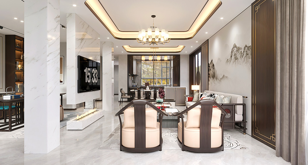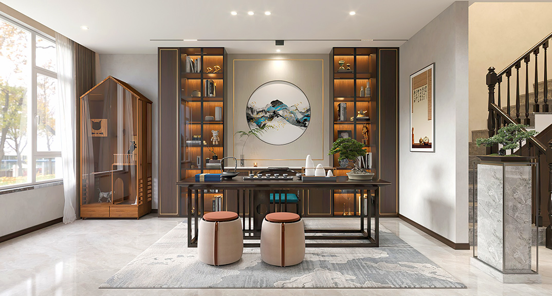 仟佰墅150㎡別墅上疊新中式風格裝修案例效果圖