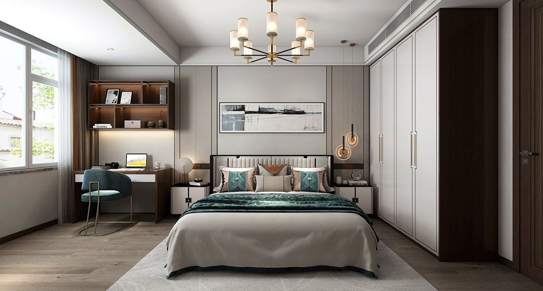仟佰墅150㎡別墅上疊主臥新中式風格裝修案例效果圖