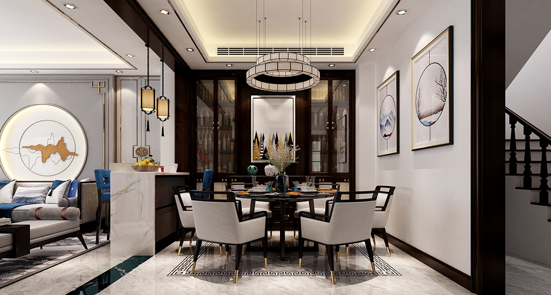 在設(shè)計(jì)新中式空間時,選擇合適的燈具,會不經(jīng)意間增加了居室中的文化意境。在燈飾選擇上,不用刻意追求中國元素,盡可能選擇風(fēng)格現(xiàn)代造型簡單,反而更能凸顯新中式的高級感。簡潔的空間中,以柔和的淺色調(diào)為主,同時搭配簡約時尚的新中式家具,沒有繁雜和冗余的造型與結(jié)構(gòu),直線感的空間給予中式藝術(shù)更多表達(dá)的余地,在整個空間及軟裝設(shè)計(jì)上突出清新淡雅、內(nèi)斂含蓄,亦張亦弛中彰顯東方雅韻。