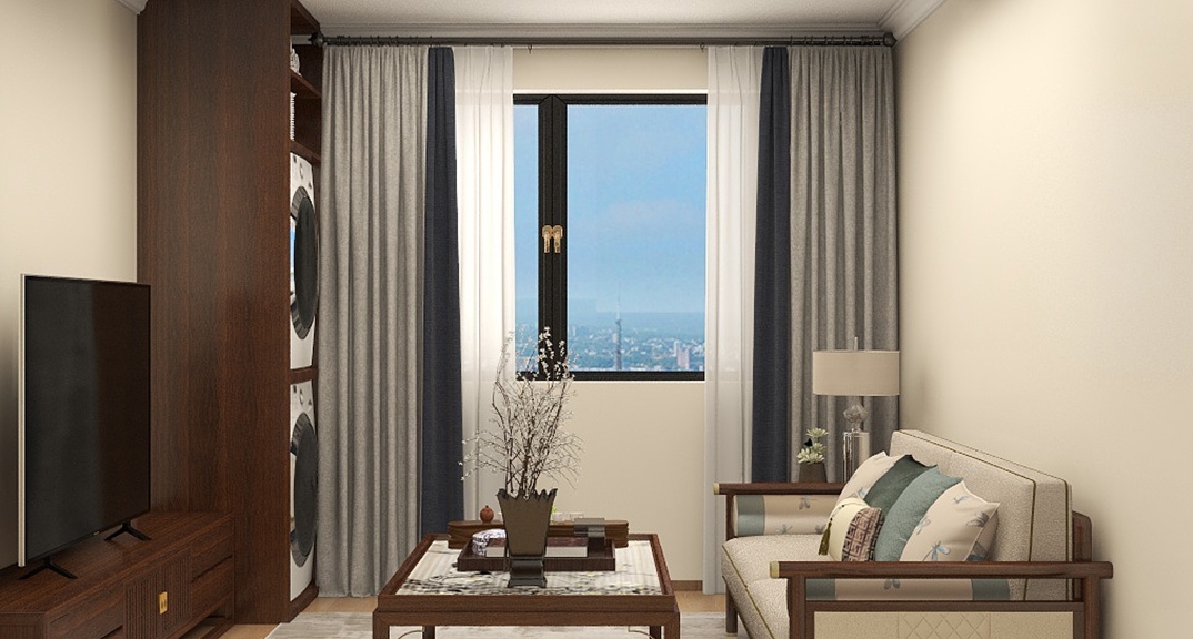 保利時(shí)代88㎡兩室兩廳客廳沙發(fā)新中式風(fēng)格戶型研發(fā)案例
