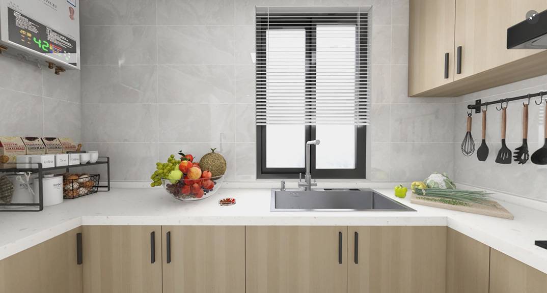 保利時代98㎡三室兩廳廚房原木風(fēng)戶型研發(fā)效果圖