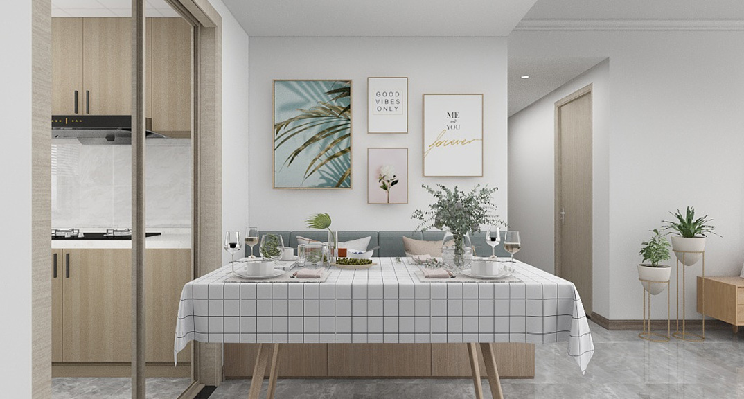 保利時代98㎡三室兩廳餐廳原木風(fēng)戶型研發(fā)效果圖