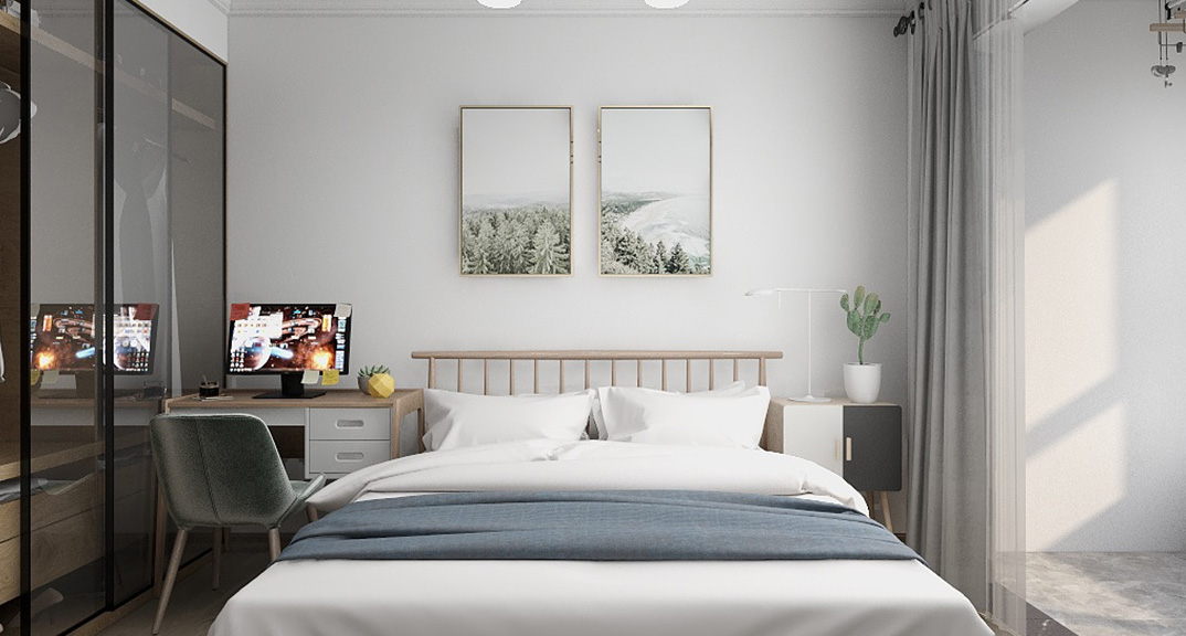 保利時代98㎡三室兩廳臥室原木風(fēng)戶型研發(fā)效果圖