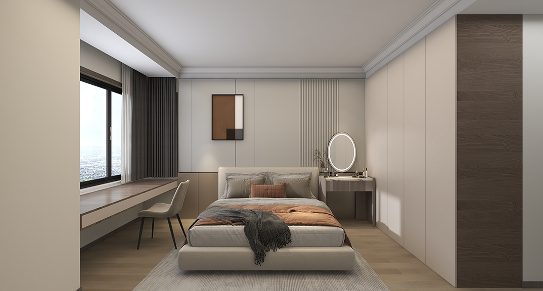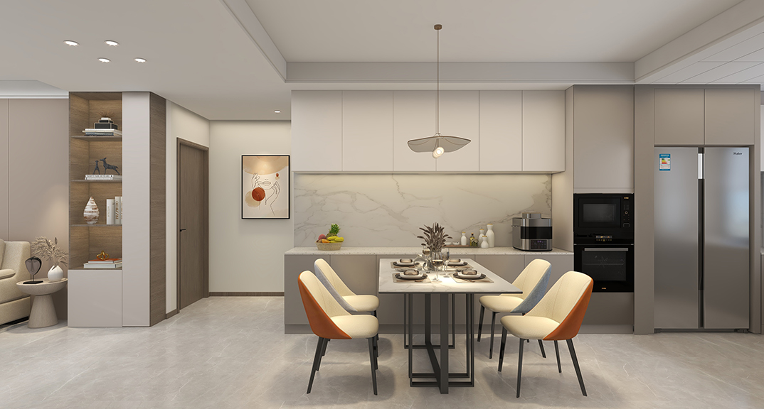 自然的氣韻自由穿梭,釋放美感與層次。經(jīng)典與現(xiàn)代的碰撞,體現(xiàn)了空間包容與開放的美學態(tài)度。多重材質拼接打破逼仄與沉悶,營造出通透敞亮的整體氛圍。此外,設計師在用色、選材上大花心思,精致細膩的陳設、冷暖相融的材質、明暗有序的組合,以期呈現(xiàn)集品質、藝術、舒適為一體的生活方式。