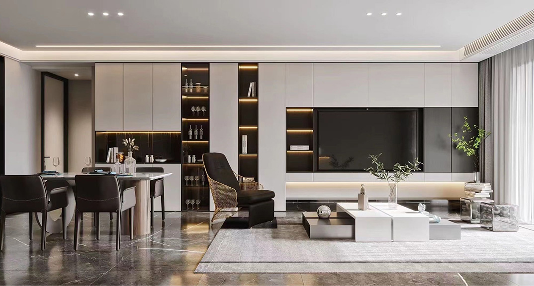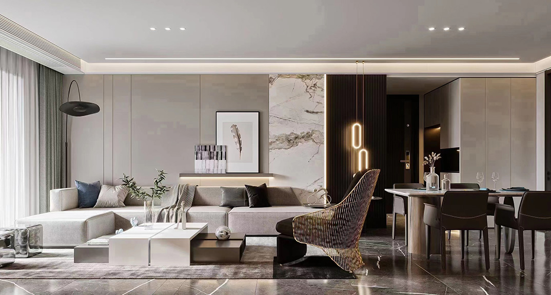 海信積米灣120㎡三室兩廳客餐廳沙發(fā)現(xiàn)代風(fēng)格裝修案例效果圖