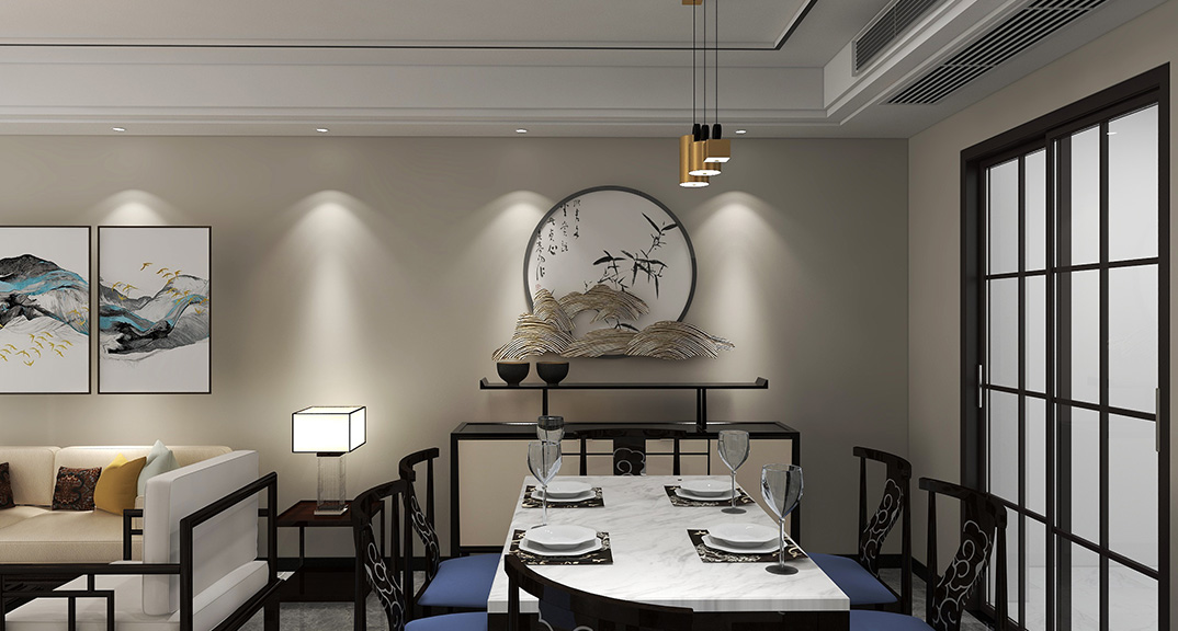 雍華府160㎡四室兩廳餐廳新中式風格裝修案例效果圖