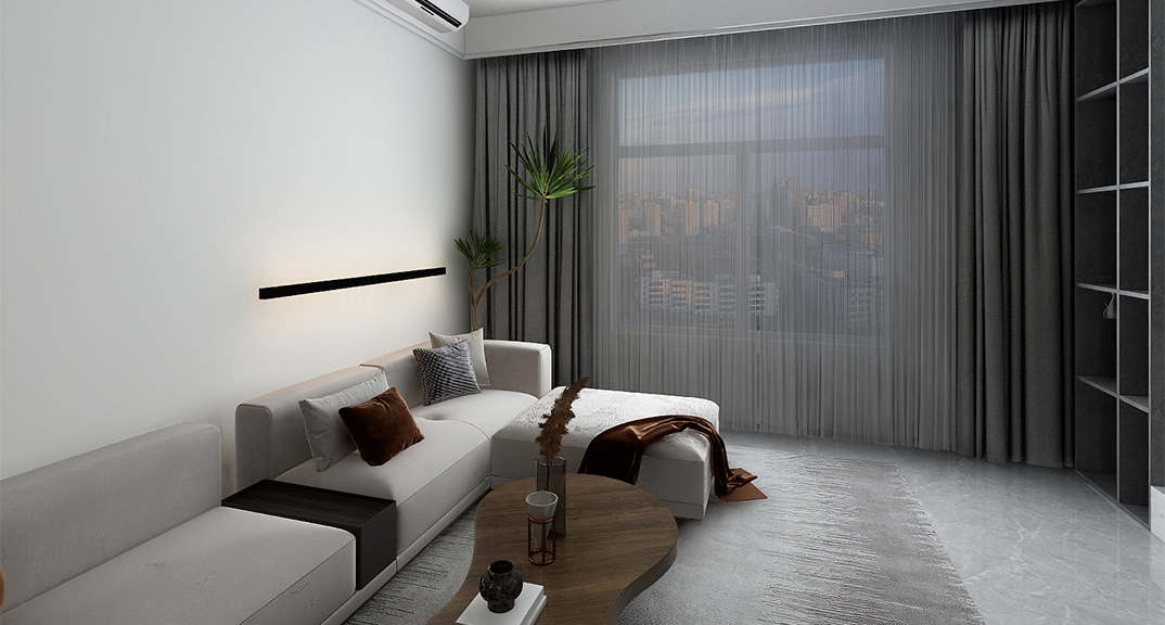 港一區(qū)125㎡三室兩廳客廳沙發(fā)簡約風(fēng)格裝修案例效果圖