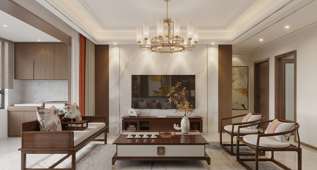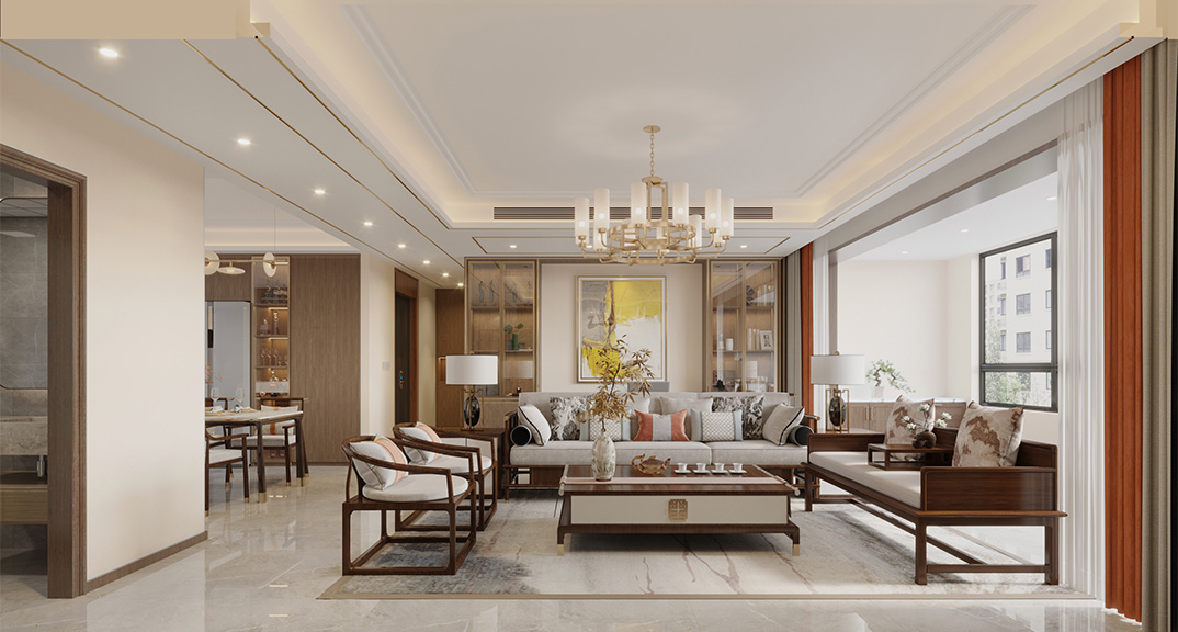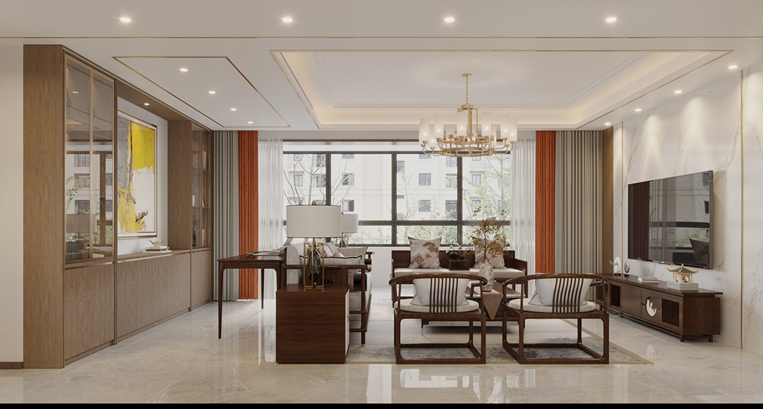 城市印象151㎡三室兩廳客廳新中式風(fēng)格風(fēng)格裝修案例效果圖