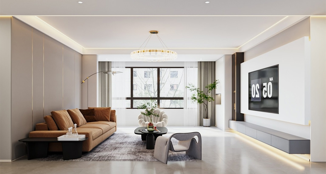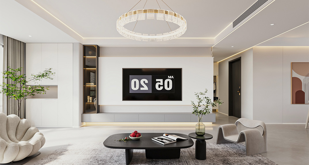 玖熙城160㎡四室兩廳客廳電視現(xiàn)代簡約風格裝修案例效果圖
