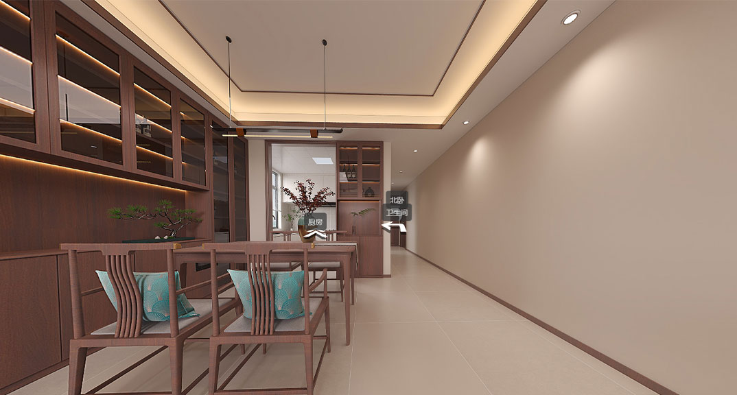 港一區(qū)123㎡三室兩廳中式風(fēng)格裝修vr全景案例