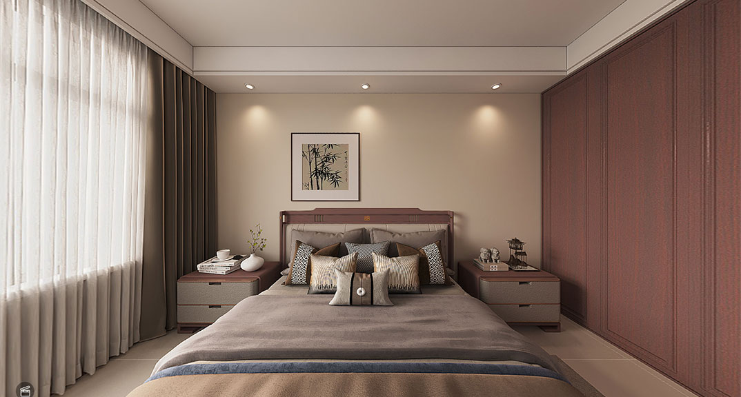 這是一套新中式風(fēng)格,以中國(guó)傳統(tǒng)文化內(nèi)涵為設(shè)計(jì)元素,在室內(nèi)布置、色調(diào)以及家具、陳列的造型等方面,吸取傳統(tǒng)裝飾。中式風(fēng)格的家具對(duì)稱(chēng)、簡(jiǎn)約、樸素富有文化內(nèi)涵,體現(xiàn)主人較高審美與社會(huì)地位。 中式家具裝修風(fēng)格的設(shè)計(jì)多采用簡(jiǎn)潔、硬朗的直線(xiàn)條,不僅迎合了中式家具追求內(nèi)斂、質(zhì)樸的設(shè)計(jì)風(fēng)格,還反映出現(xiàn)代人追求簡(jiǎn)單生活的居住要求,使中式風(fēng)格更加實(shí)用,更富有現(xiàn)代感。