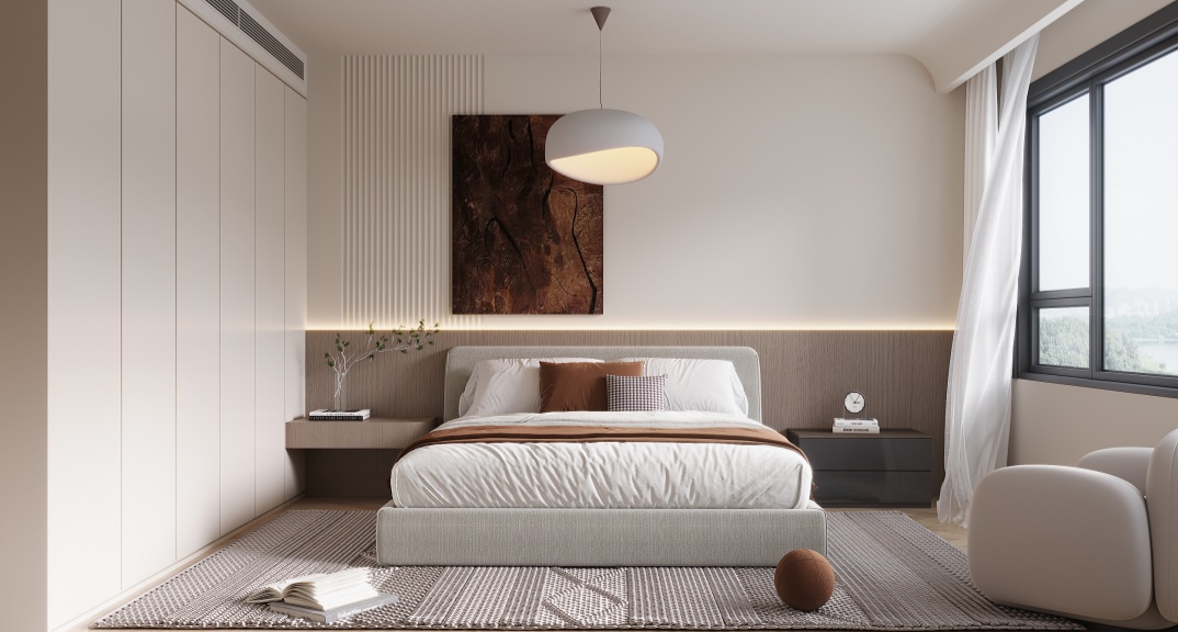 本設(shè)計主打現(xiàn)代簡約風(fēng),整體空間以簡潔的直線條勾勒輪廓,墻面多為素色,搭配質(zhì)感軟裝??蛷d用筒燈、燈帶營造溫馨氛圍;開放式廚房增強通透感,臥室布置簡約,注重收納,家具選低飽和度色彩,呈現(xiàn)舒適、時尚且實用的居住空間。