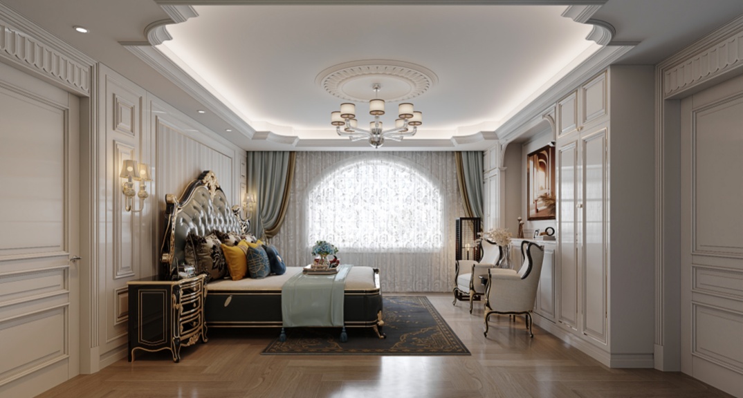 三層為主人私享空間。主臥寬敞明亮,配備獨(dú)立衣帽間和衛(wèi)浴,營(yíng)造奢華舒適的休憩環(huán)境??团P可作為備用房間,滿足多樣化需求。