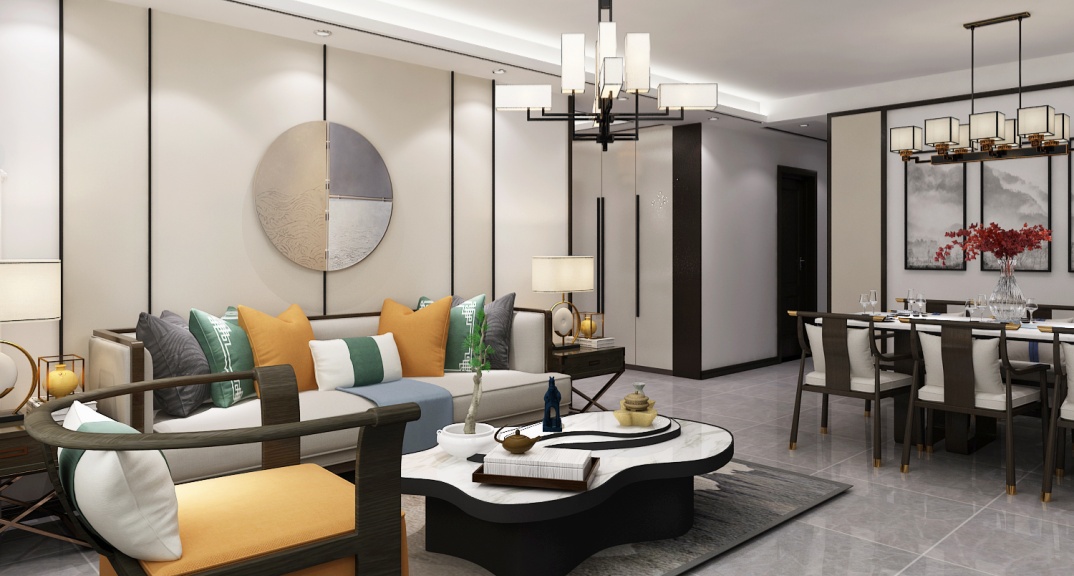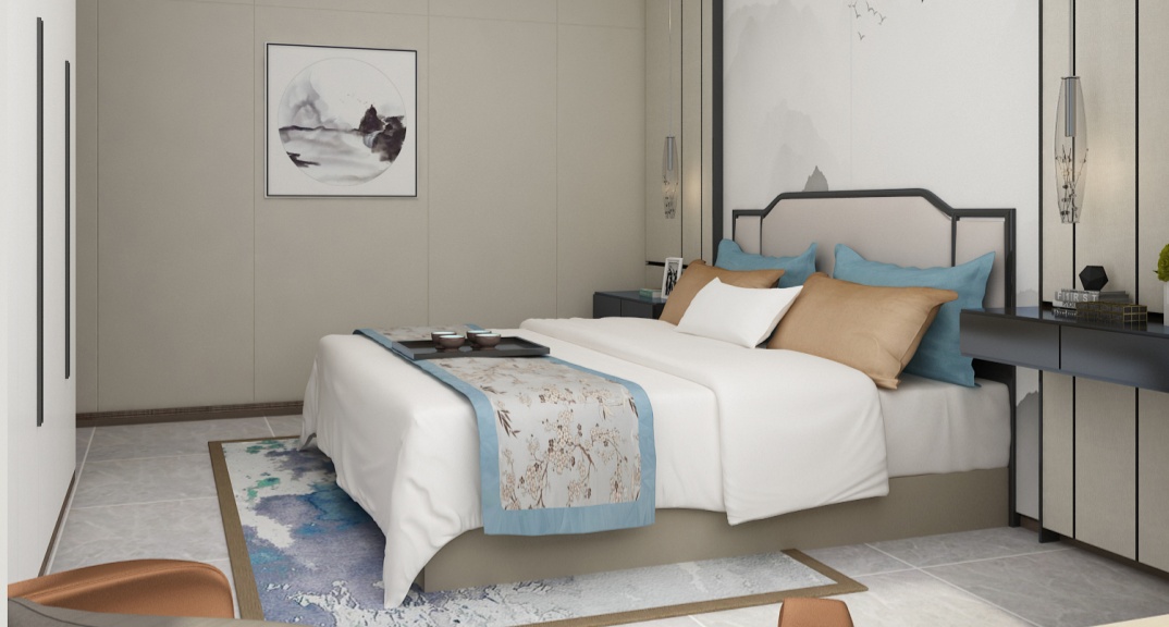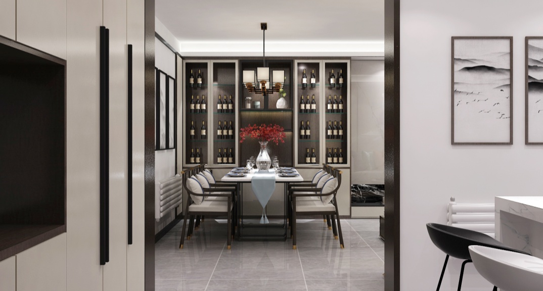 餐廳與客廳在一個(gè)空間統(tǒng)一處理,滿足會(huì)客就餐功能;進(jìn)門做開放式廚房,增加廚房操作空間,增加早餐導(dǎo)臺(tái);主臥開間比較大,床對(duì)面做定制衣柜,主衛(wèi)改成衣帽間,增加收納;兒童房及客房用定制衣柜,榻榻米增加收納空間,滿足學(xué)習(xí)及休息空間;陽(yáng)臺(tái)設(shè)置洗衣機(jī),增加學(xué)習(xí)區(qū)。
