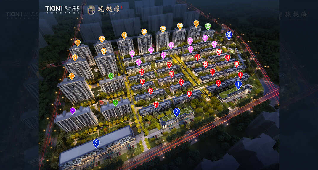 海天一仁和瓏樾海位于膠州灣與女姑山之間,南側(cè)600米即為3.8公里海邊木棧道??芍^是瓏樾依山著,云霞出瀚海。整個小區(qū)共有43棟樓,產(chǎn)品涵蓋裝修小高層、裝修洋房、疊拼別墅等三類產(chǎn)品。項(xiàng)目總共占地面積10.4萬平,建筑面積15.7萬平,容積率僅為1.5。整個小區(qū)采用了行列式建筑排布,形成“負(fù)陰抱陽”的建筑排布。小區(qū)分為八大園區(qū),分別為海園,瓏園,臻園,樾園,璽園,鶯園,儒園以及前園。每個組團(tuán)都有專屬的景觀軸線,使得整個小區(qū)能夠做到春有花、夏有蔭、秋有果、冬有綠、一步一景,步移景異的園林效果,業(yè)主可享受全方位的景觀資源。
